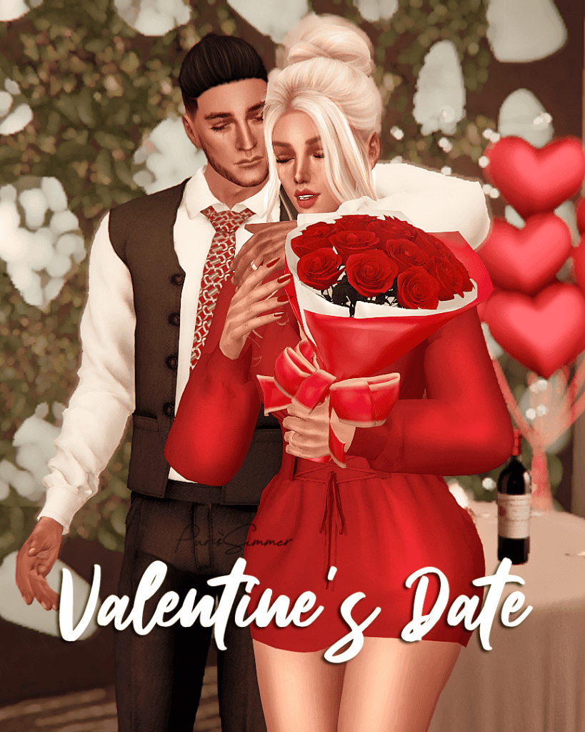 Valentine’s Date is a gorgeous romantic pose pack designed for cozy dinner-date storytelling and elegant Love Day screenshots. This set includes 8 couple poses featuring sweet interactions across a decorated table.